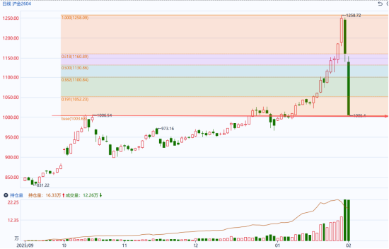 黄金及相关有色板块早盘虽有小幅反弹,但午后均快速走弱、扩大跌幅。关联板块未能实现企稳,进一步加剧了市场的恐慌情绪。目前黄金主力Au2604合约正好跌至前期关键支撑区间1000整数关口附近,如果继续选择向下跌破,则技术上有进一步转弱风险。